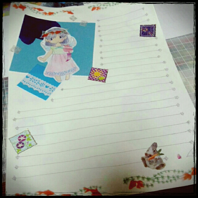 余り種類がなくて結局、真っ白な便箋を買ってきて作りました。