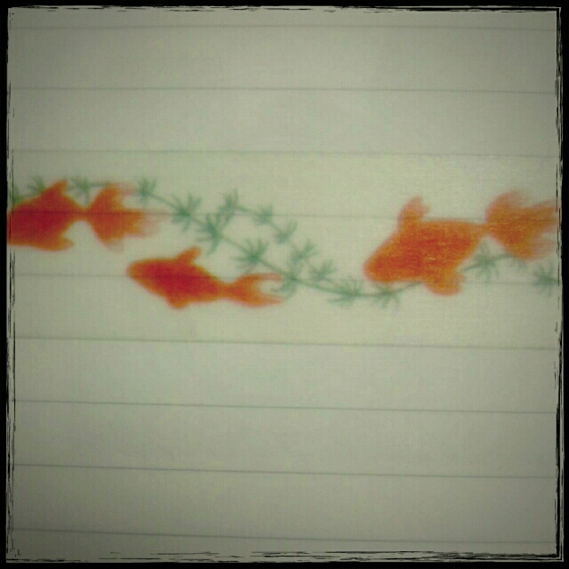 水草の上を金魚が涼やかに泳いでる様なデザイン。