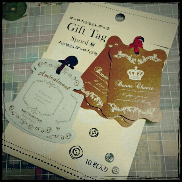 セリアで買った糸巻き風タグ。