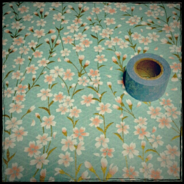 横幅を合わせて包装紙の下に和紙を1センチ位ズラしてマスキングテープで仮止め。