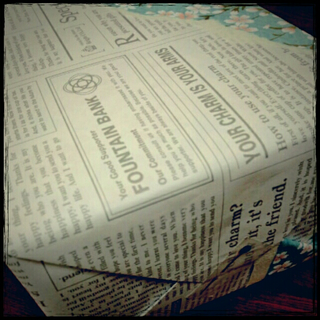 雑貨屋で買った英字新聞風の包装紙(サイズ忘れたけど2枚で300円位)。