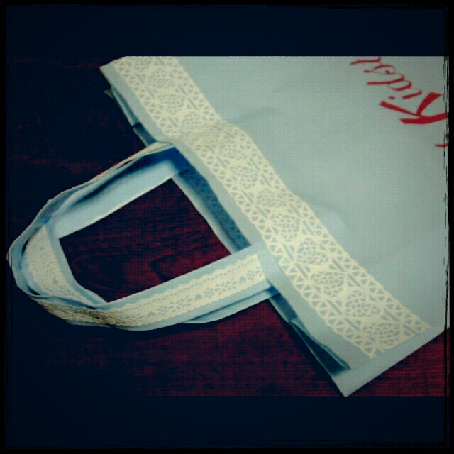 そのままでも悪くはないけど袋の縁と持ち手にレースシール貼ると雰囲気変わります。