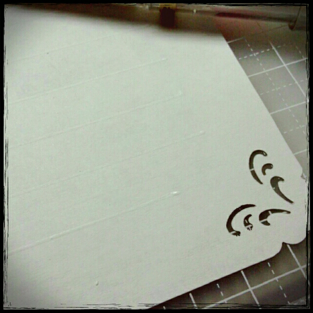 綺麗に貼り終わったら端切れを取って白ペンで罫線下書き。
