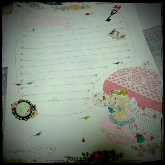 便箋にあれこれ貼ったり塗ったりで厚みがあってパリパリしてるのでイルカ型のクリップで便箋を留めて出す予定。