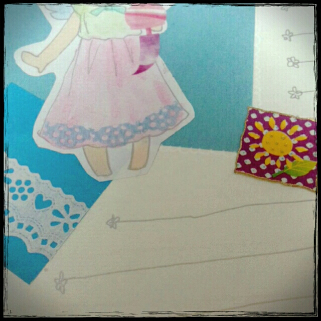 絵を描くよりダイソーのペーパーシールをコピックで塗って横半分に切って、更に縦に短く切ってスカートに合わせて貼るのが楽しかった。
