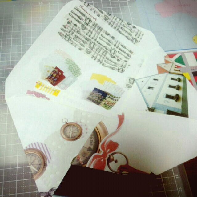 やっぱり全体的に色ついてると手作り封筒って綺麗に思える。