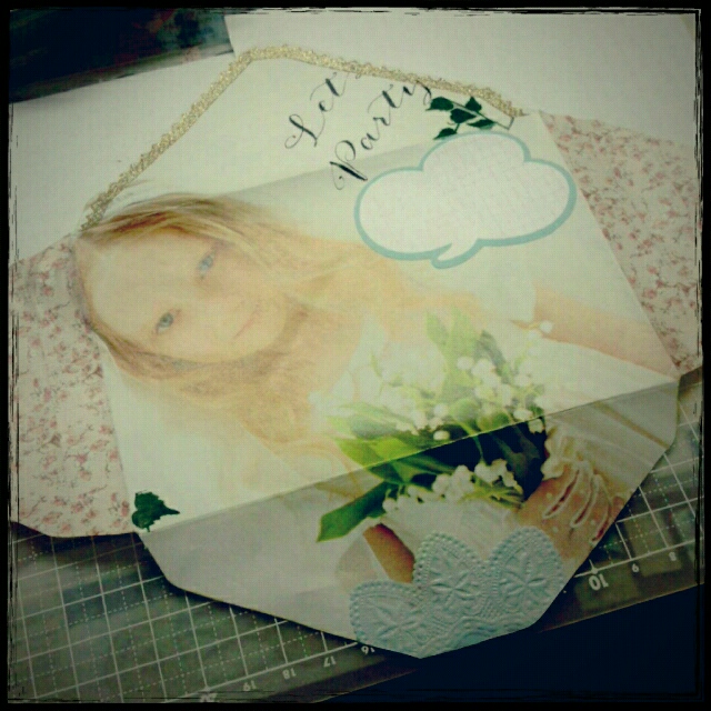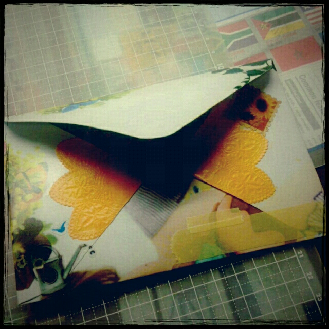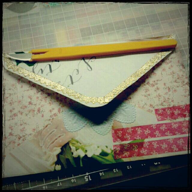 レースペーパーを水糊で貼ろうとしたらコピックのインクが封筒に付いちゃって焦りました。