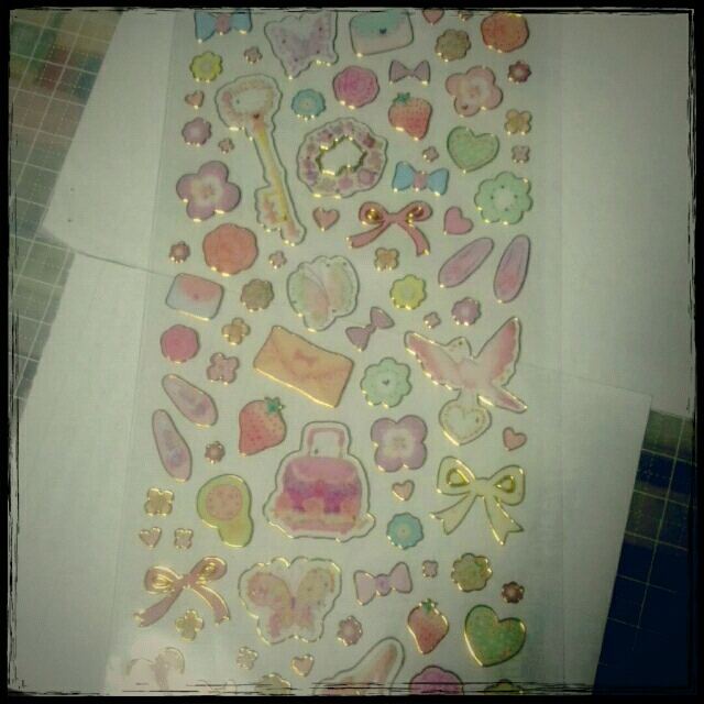 淡い色合いにファンシーな絵柄に金の縁取りで可愛いシールです。