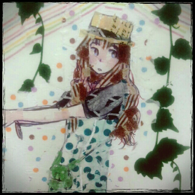 最近は紙に通常は使わないであろう物(チーク、ラメ入りマニキュア、レース、リボンだとか)を使うのが楽しい。