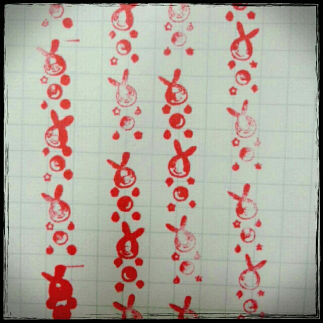 今、手持ちにあるのがスケジュールスタンプ2個(花とクローバー)、アルファベットと数字のミニスタンプセット、友人から貰ったレース系のスタンプセット、ネーム判子2種類(1方は無くした)、自作のガタガタ消しゴム判子…位。