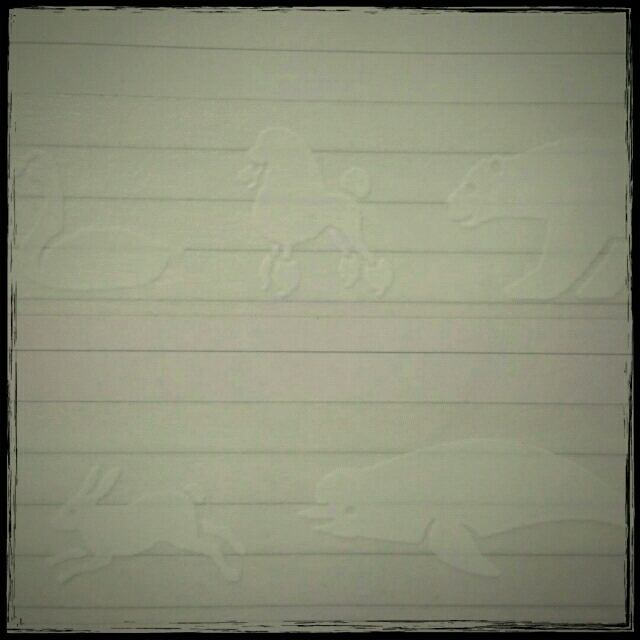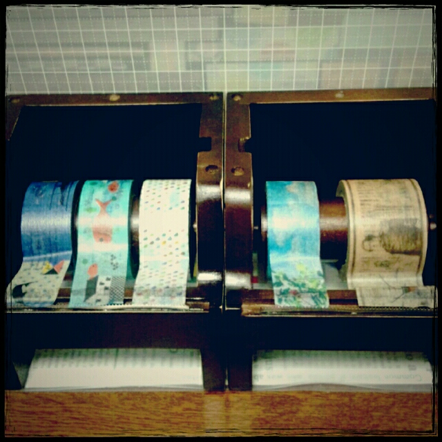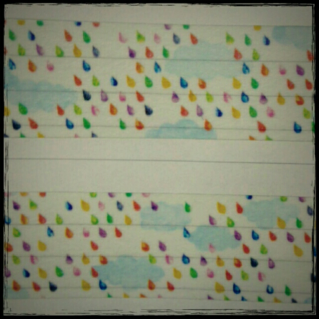 前回の重ねるテープの熊や兎のマスキングテープの下に重ねて雨のお散歩的な貼り方をすると、うひょーってなります。