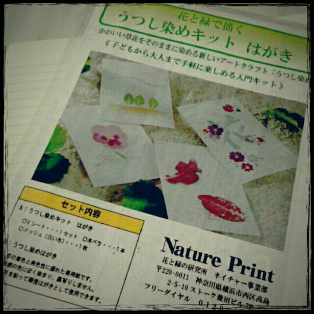 花と緑で描く うつし染めキット はがき。