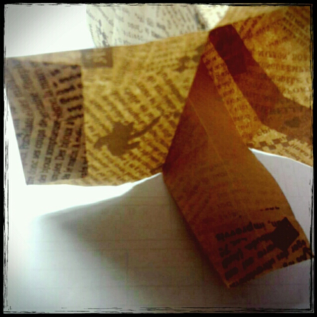 前に四角だか三角だかに折る折り方を誰かに教えて貰ったけど忘れたので小さく畳んで開かない様にマスキングテープで止めました。