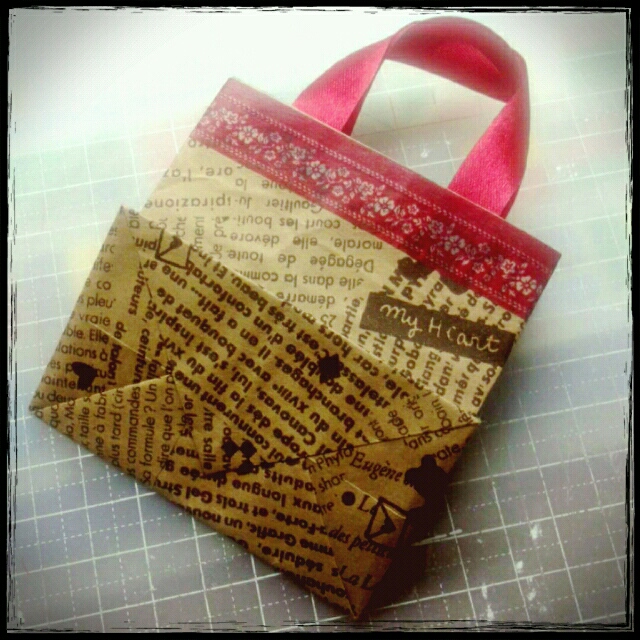 紙袋を急に作りたくなったけど最初から作るには手間がかかるので手持ちにあった紙袋を利用。