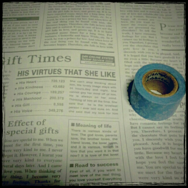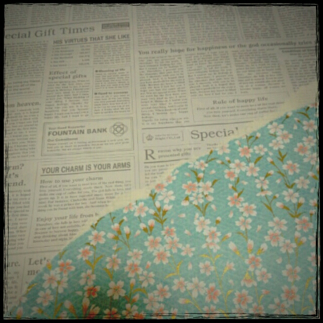 雑貨屋で買った英字新聞風の包装紙(サイズ忘れたけど2枚で300円位)。