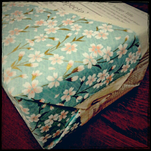和洋折衷で楽しいラッピングだけど和紙と包装紙で厚みが違うから横を折る時に多少歪むのが難点。